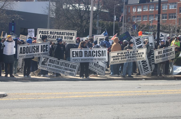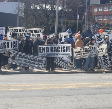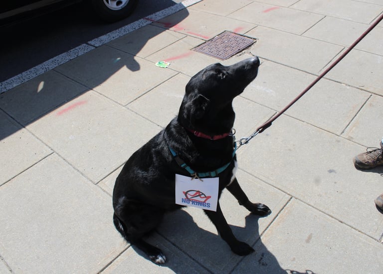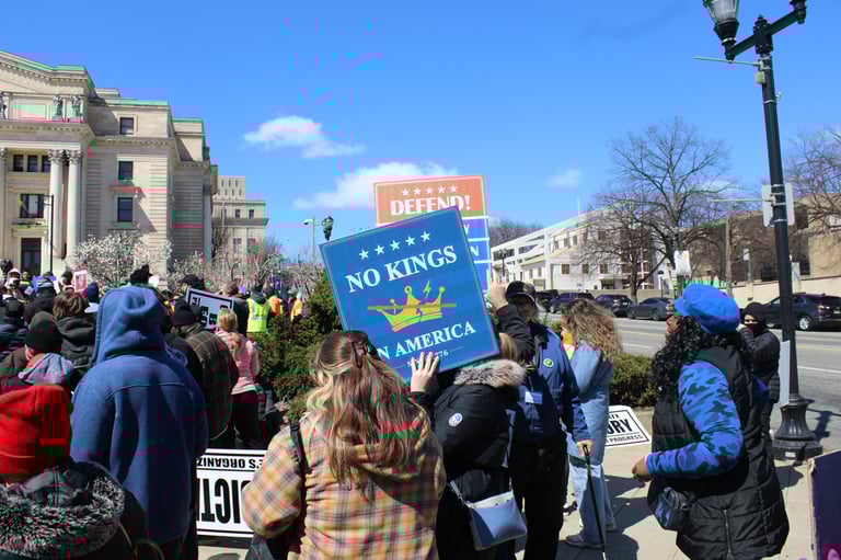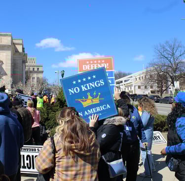 Beautiful afternoon in protest at the seated Lincoln Stature in Newark, New Jersey in protest on No Kings Day.